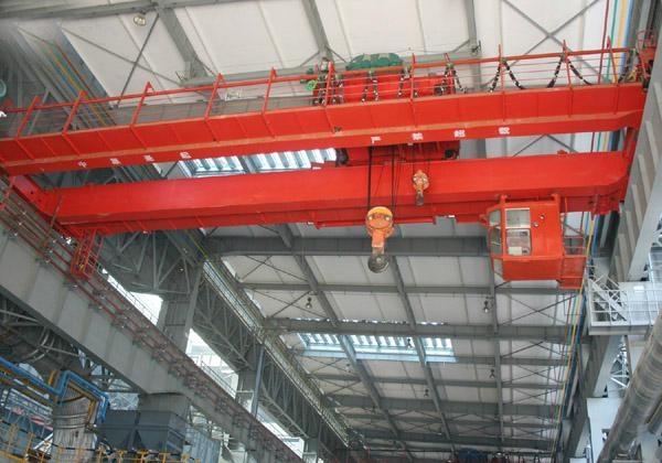 桥架在高架轨道上运行的一种桥架型起重机,又称天车。桥式起重机的桥架沿铺设在两侧高架上的轨道纵向运行,起重小车沿铺设在桥架上的轨道横向运行,构成一矩形的工作范围,就可以充分利用桥架下面的空间吊运物料,不受地面设备的阻碍。这种起重机广泛用在室内外仓库、厂房、码头和露天贮料场等处。